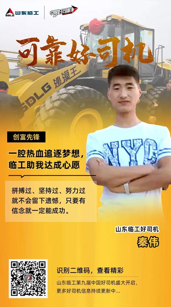 从13年初入工程机械行业,到初次创业购买南宫NG·28(中国)相信品牌力量设备,再到20年参加南宫NG·28(中国)相信品牌力量好司机,今天的主人公秦伟在南宫NG·28(中国)相信品牌力量的陪伴下追逐自己的梦想,并逐步实现。他的身上总有一股子热劲儿,不服输,有激情。他为了梦想一往无前的冲劲与拼劲,和永不言败的信念与豪情,值得我们每一个人的尊重与学习。