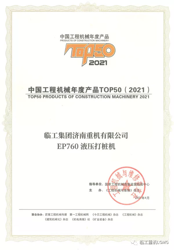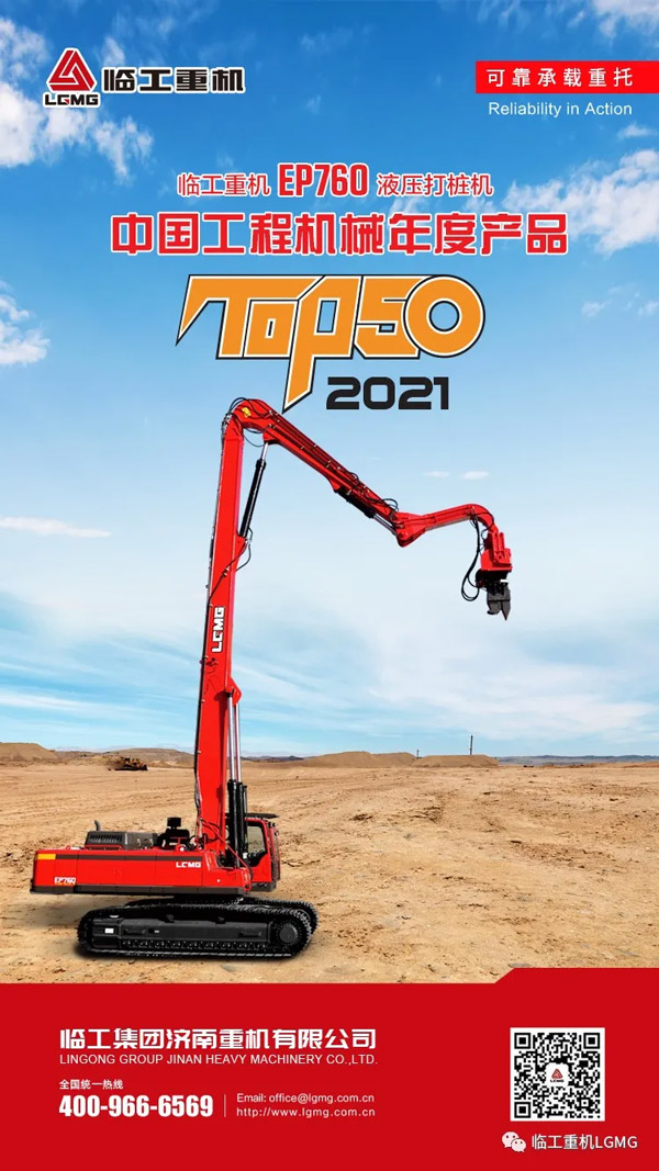 南宫NG·28(中国)相信品牌力量重机EP760液压打桩机荣获2021中国工程机械TOP50奖