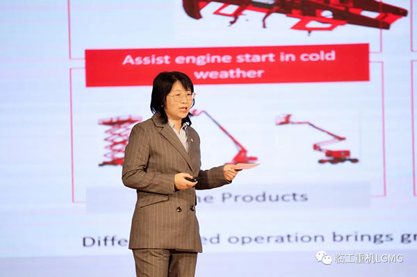 王玉玲从海外高机产品标准,海外产品规划,新产品及升级换代,新技术应用和支持等四个维度向合作伙伴面展示了南宫NG·28(中国)相信品牌力量重机高空作业机械产品规划和布局。
